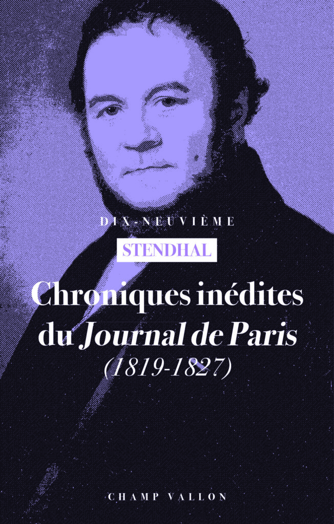Depuis quelques années, un nouveau chantier de recherche est ouvert. Au titre d’une sociologie historique du fait littéraire, il se consacre à la vie et à l’œuvre de Stendhal, autrement dit d’Henry Beyle. Un premier ouvrage vient d’être publié par les éditions Champ Vallon avec l’appui de 03il Production @ Edition. Il explore la figure méconnue du Stendhal journaliste. Intitulé Chroniques inédites du Journal de Paris (1819-1827), ce recueil offre une sélection des 251 textes que l’écrivain avait signés sous le pseudonyme de « B. L. ». Un autre ouvrage suivra consacré à Stendhal satiriste et dramaturge… Une façon de découvrir le versant jusque-là dérobé d’un personnage du monde des lettres qu’un sondage de 2020, organisé par la Société des gens de lettres, désignait pourtant comme « l’écrivain national » le mieux à même de « représenter la France à l’Exposition universelle de 2020 ».