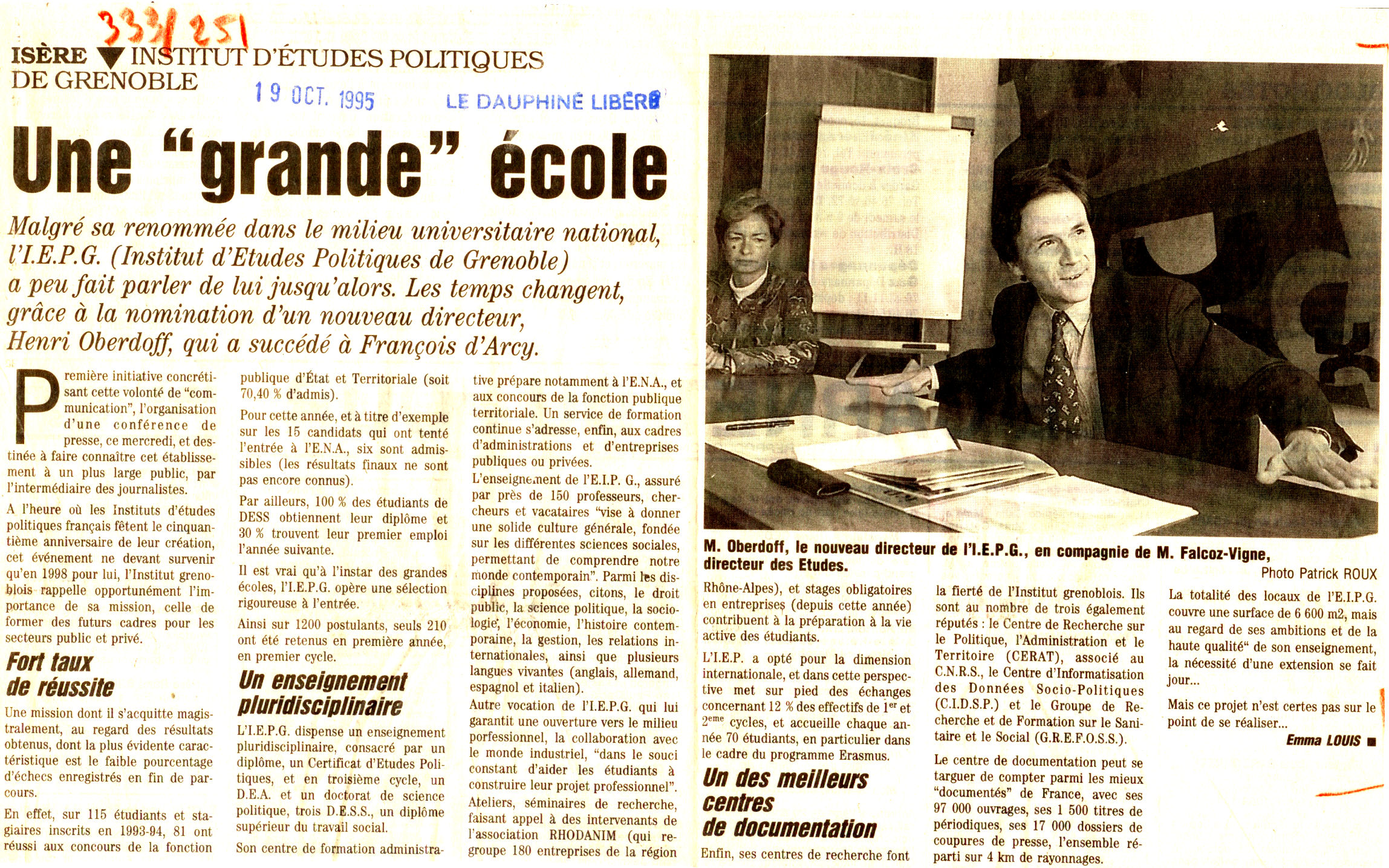 ► La nomination d'Henri Oberdorff à la tête de l'IEPG vue par Le Dauphiné Libéré ◄